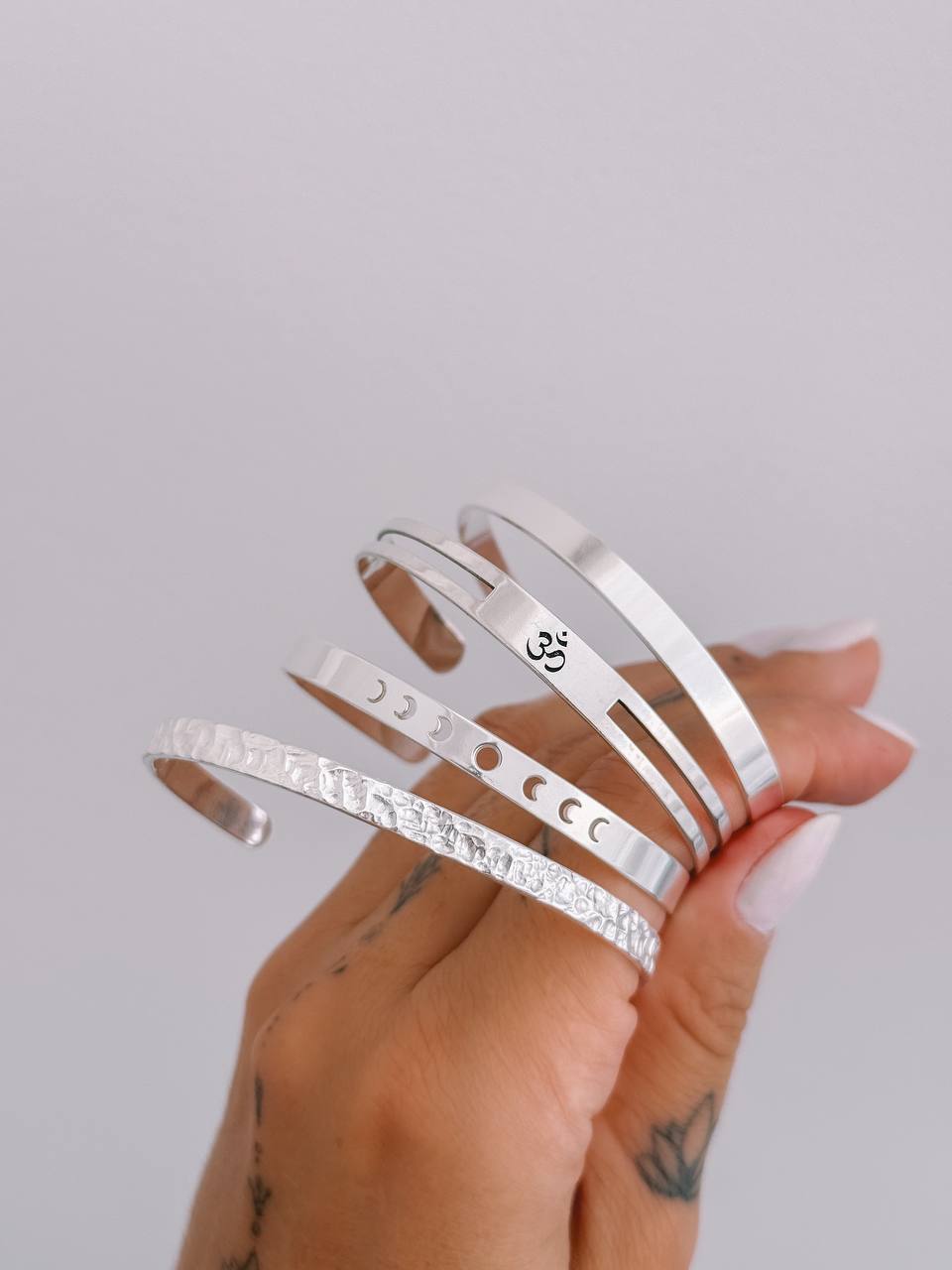 Bracelete em Prata 925 Liso Aberto Ajustável