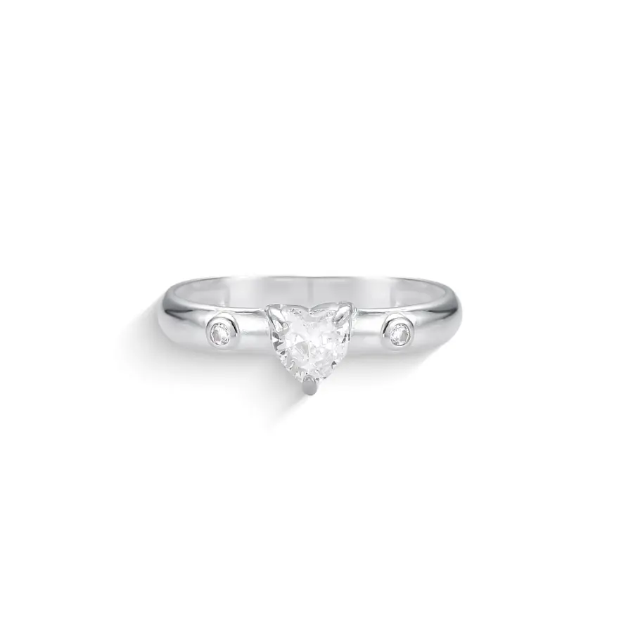 Anel com Zircônia de Coração e Microzircônias em Prata 925