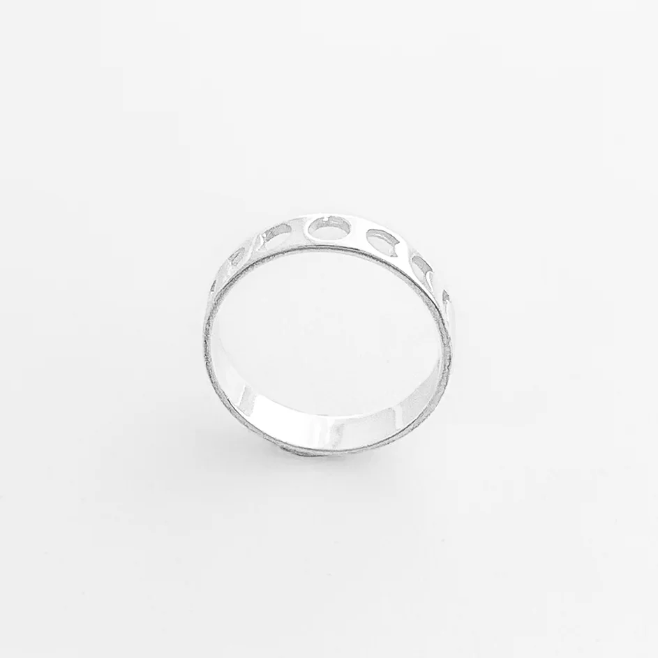 Anel Vazado Círculo, Coração e Meia Lua em Prata 925.