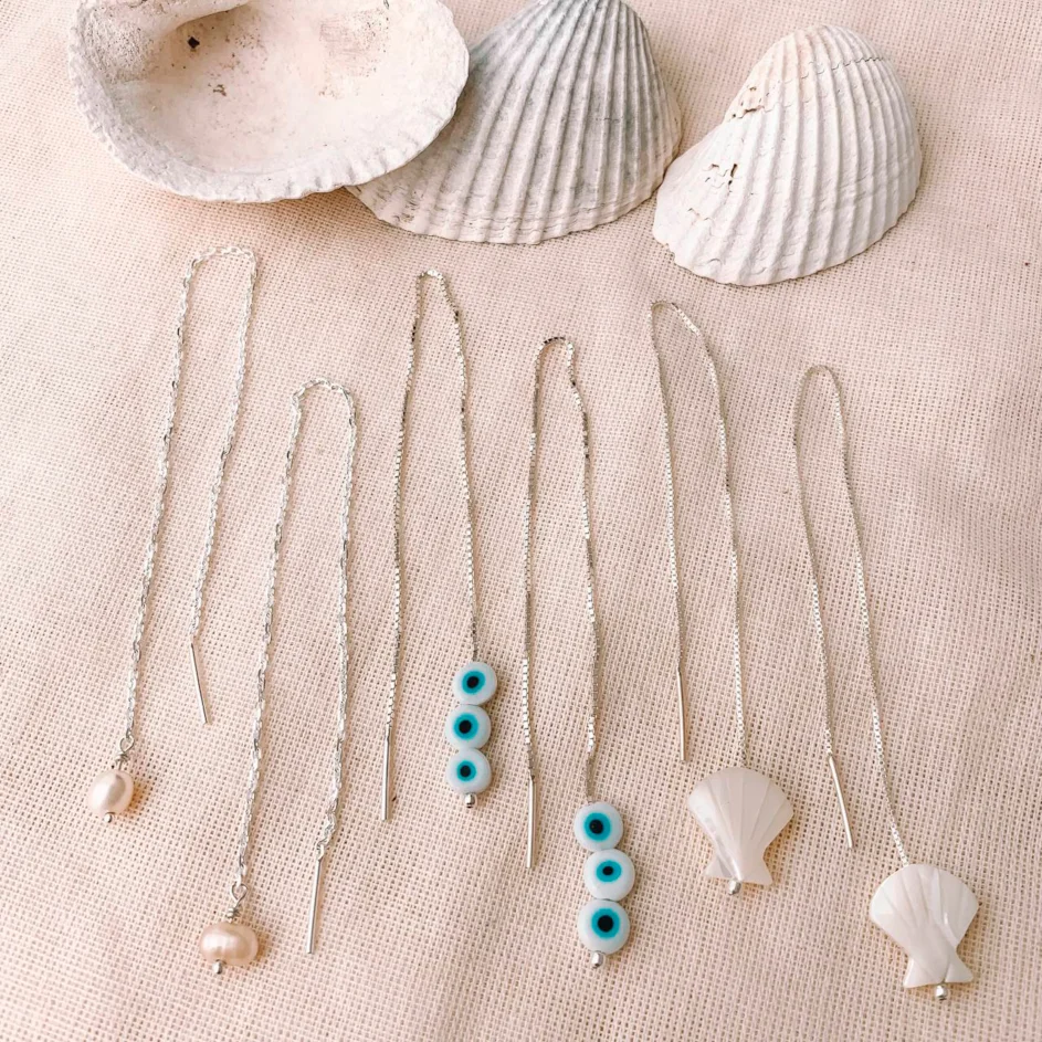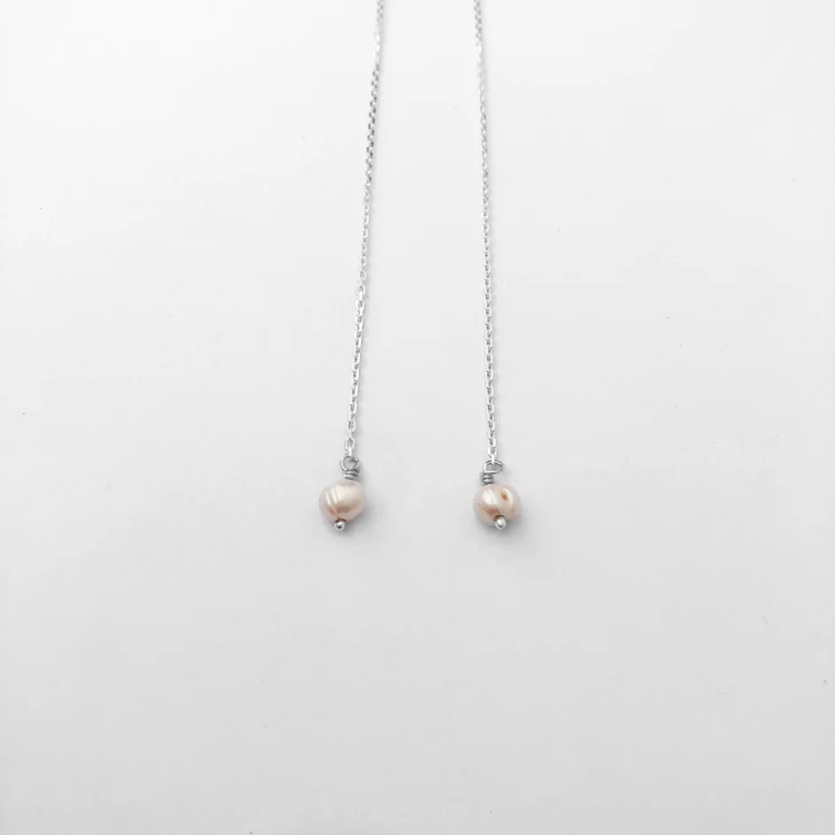 Brinco Corrente 15cm Com Pérola Na Ponta Em Prata 925